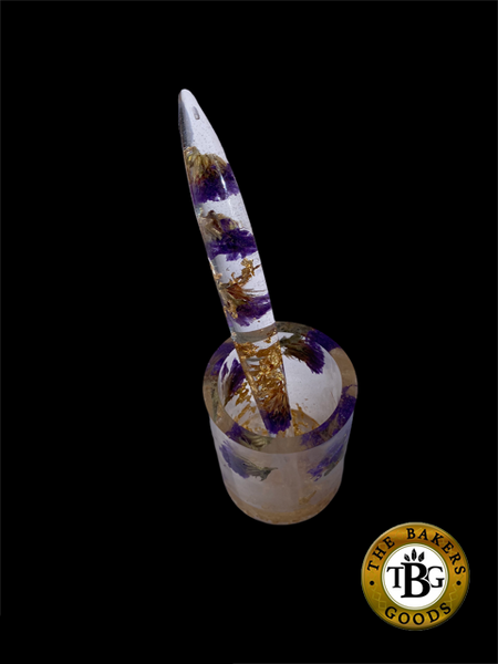 Black Ink Pen with Resin Casing and Matching Pen Holder